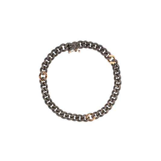 MANO|J. BRACCIALE -BRACCIALE GROUMETTE SNODATO IN TITANIO, 3 MAGLIE ORO ROSSO 18 KT - GROUBRT3RGSN