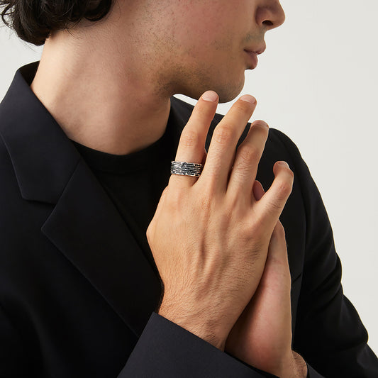 Mano|J ANELLO UOMO IN TITANIO SABBIATO CON PAVE' DI 25 DIAMANTI BLACK MINANT25BMUSABB_25