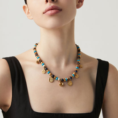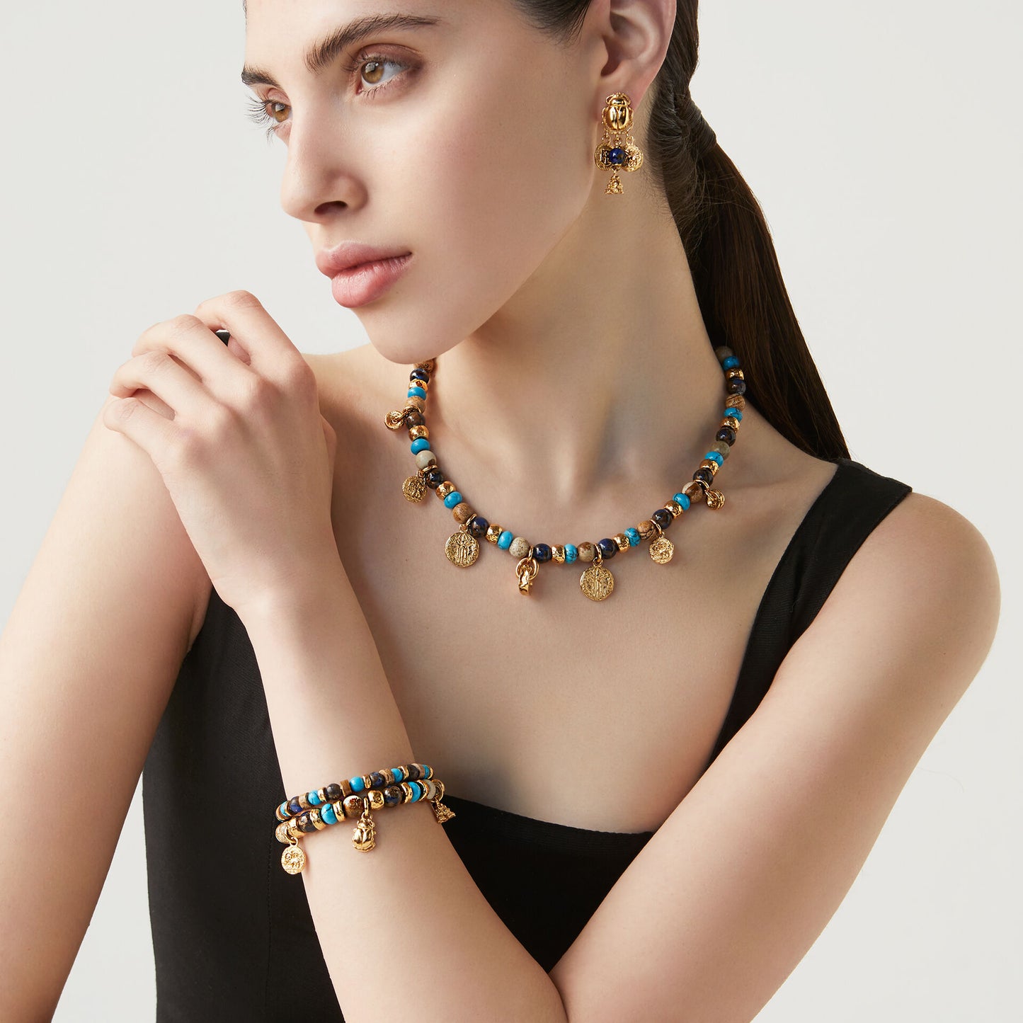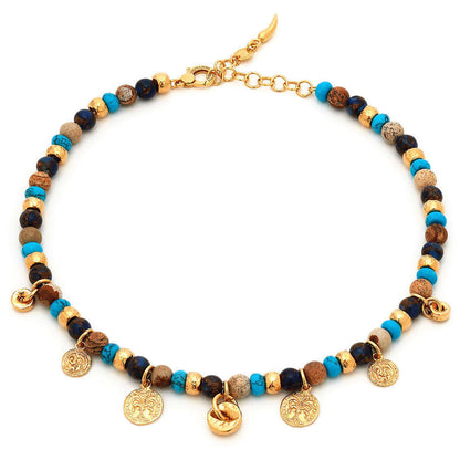 • Argento 925 in bagno d'oro, turchese, agata blu con bronzite e pietra paesina