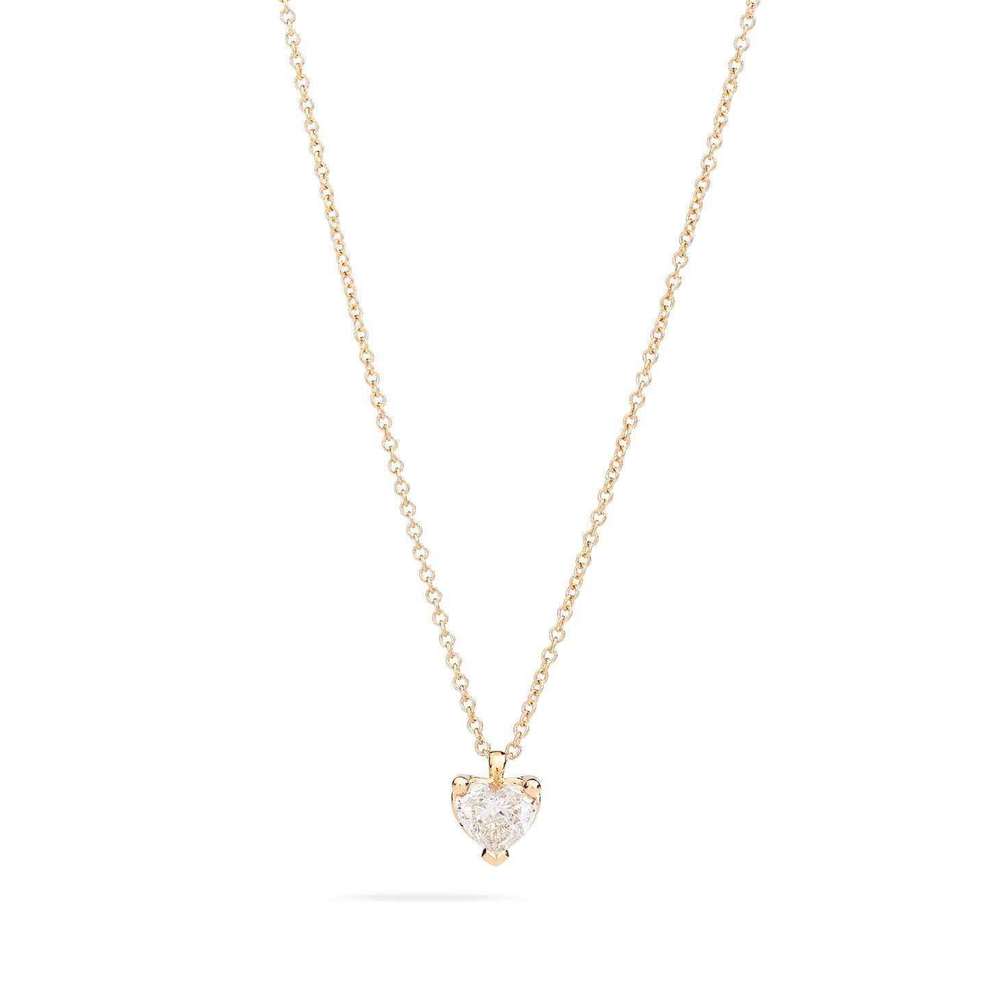Solitario in oro giallo 18 kt e diamante naturale taglio brillante forma a cuore