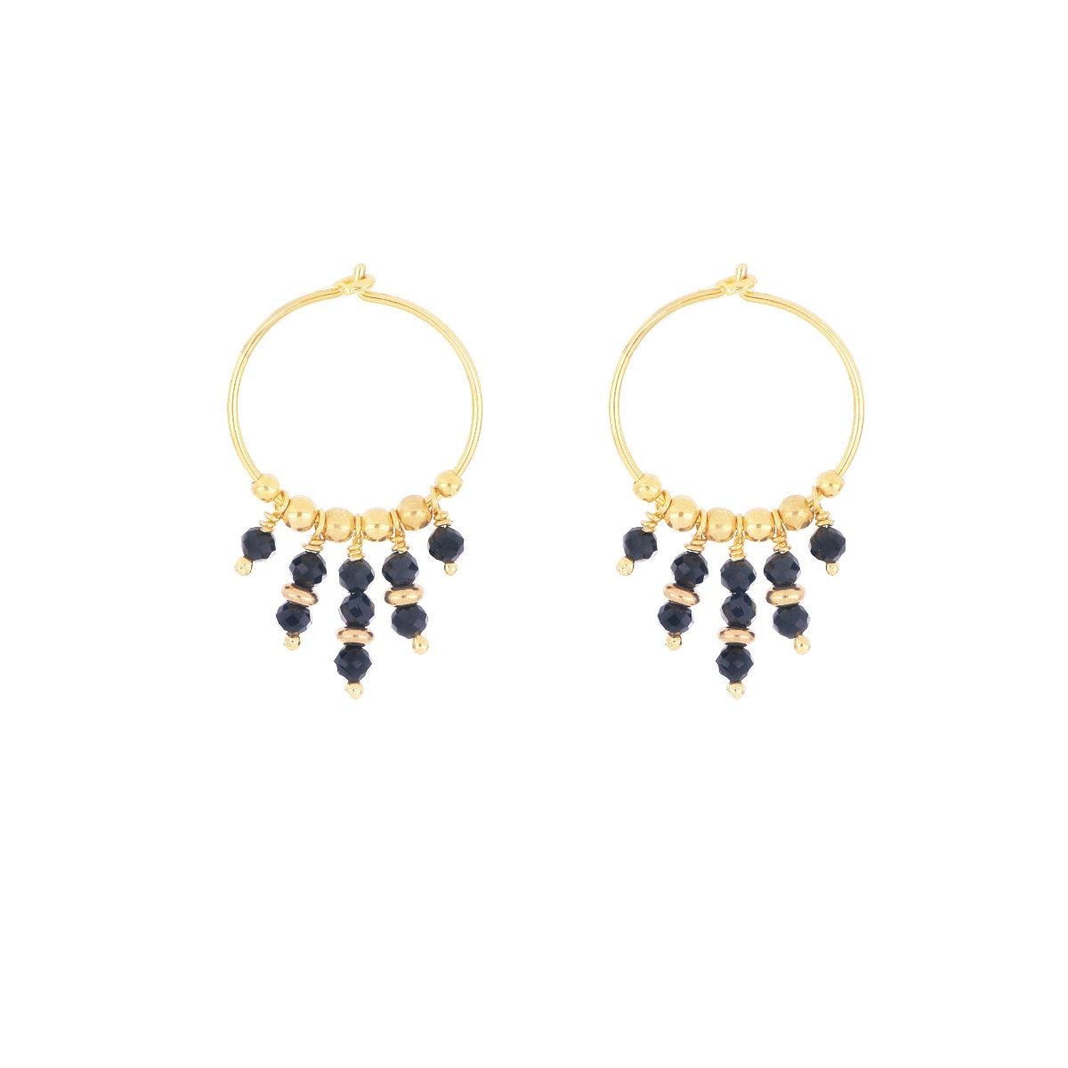 Orecchino a cerchio singolo con sfere e elementi decorativi e pietre di spinello pendenti.