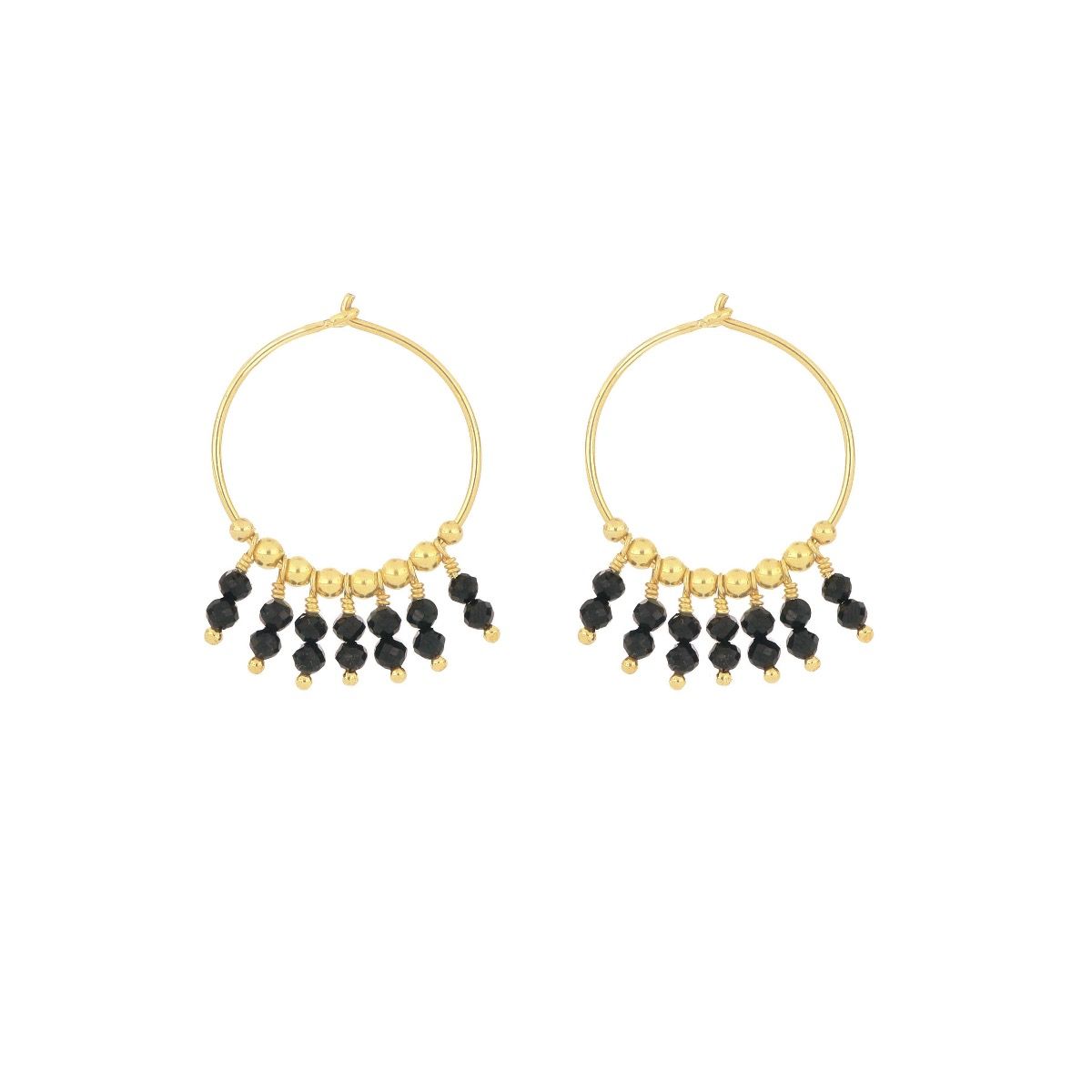 Orecchino a cerchio singolo con pietre di spinello e sfere decorative in argento.