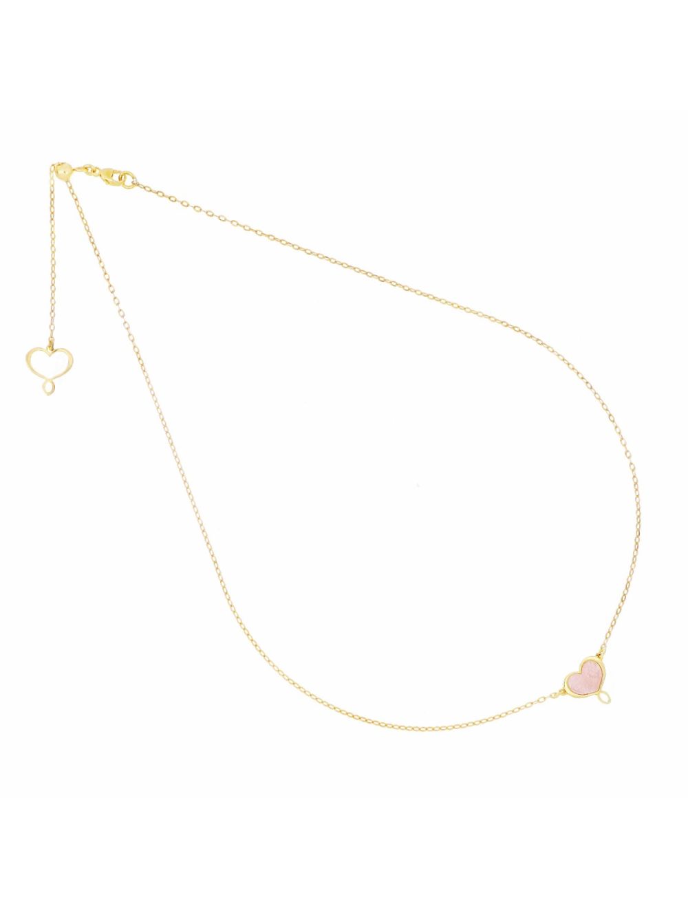 Girocollo con cuore Maman et Sophie centrale con madreperla rosa realizzato in argento 925 con galvanica oro giallo ad alto spessore e resistenza.