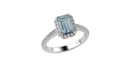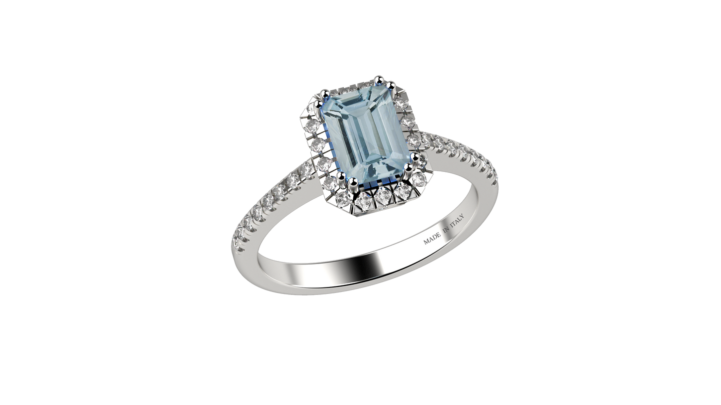 Anello Acquamarina in Oro 18 Kt e Diamanti Naturali