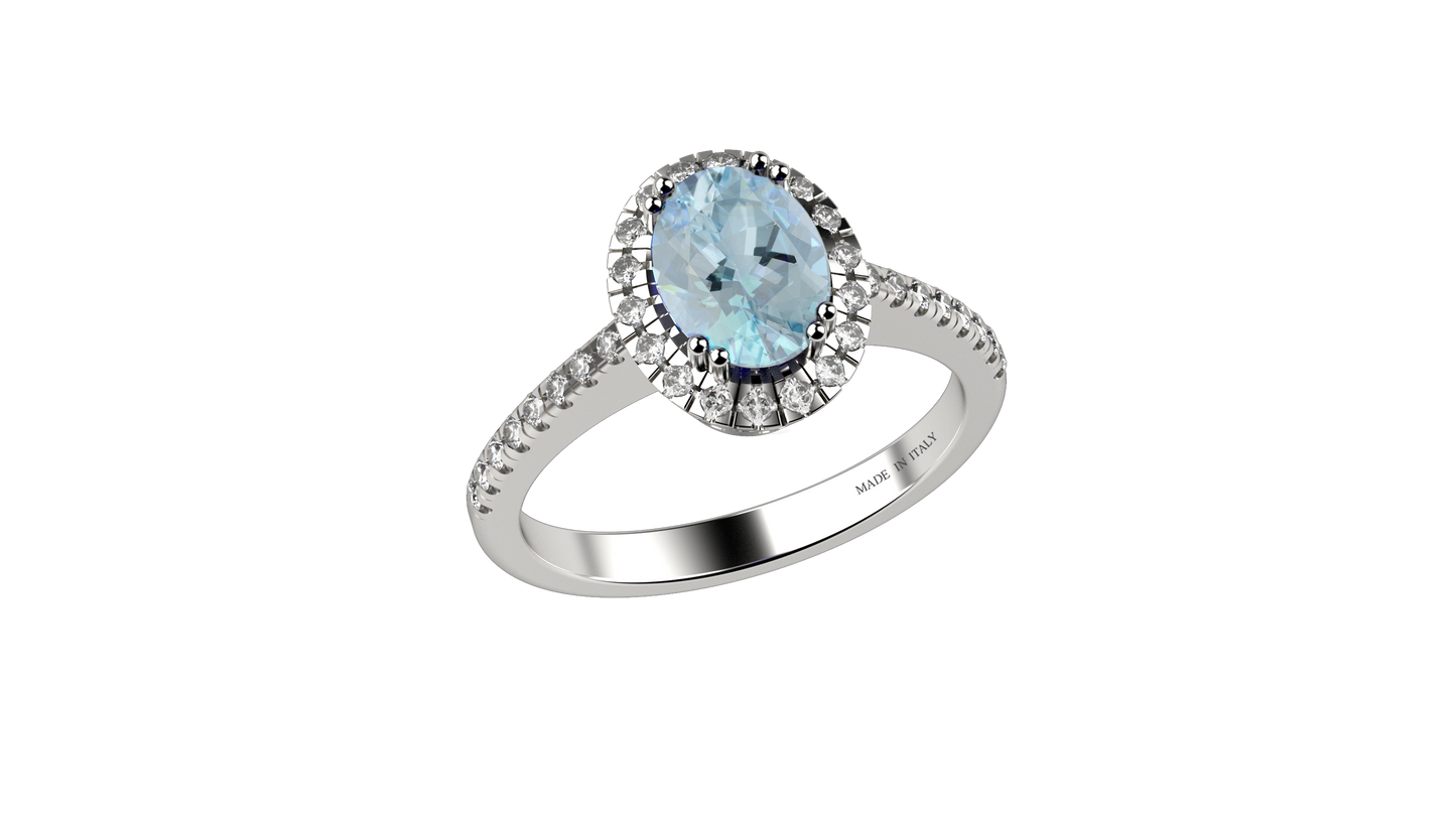 Anello Acquamarina in Oro 18 Kt e Diamanti Naturali
