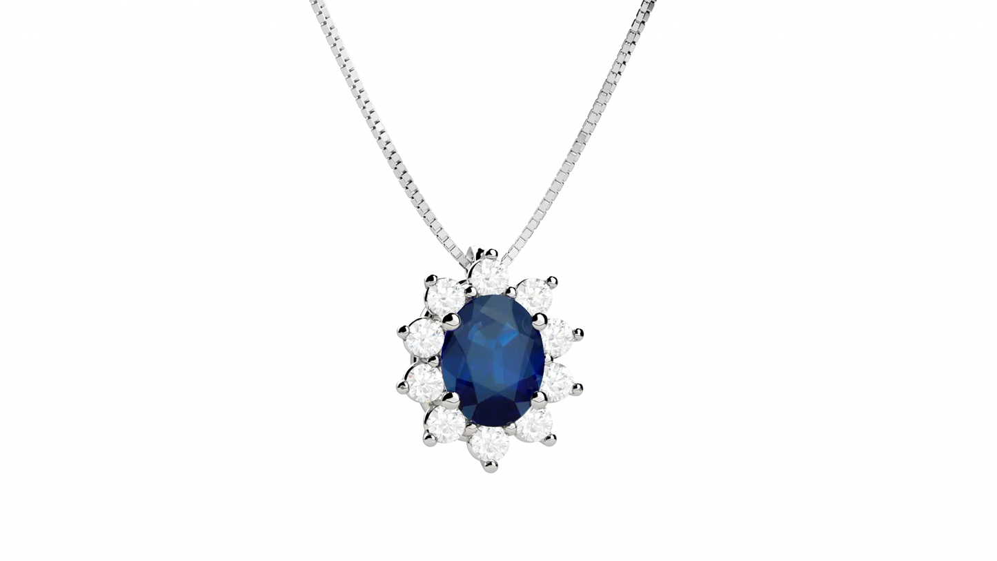 Collana in Oro 18KT con Zaffiro e Diamanti Naturali