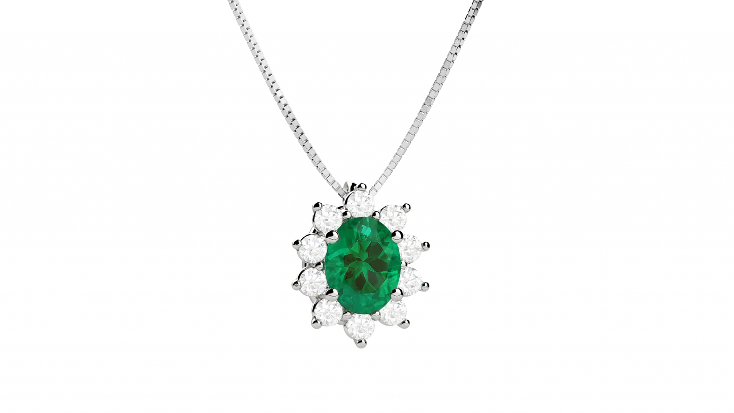 Collana in Oro 18KT con Smeraldo e Diamanti Naturali