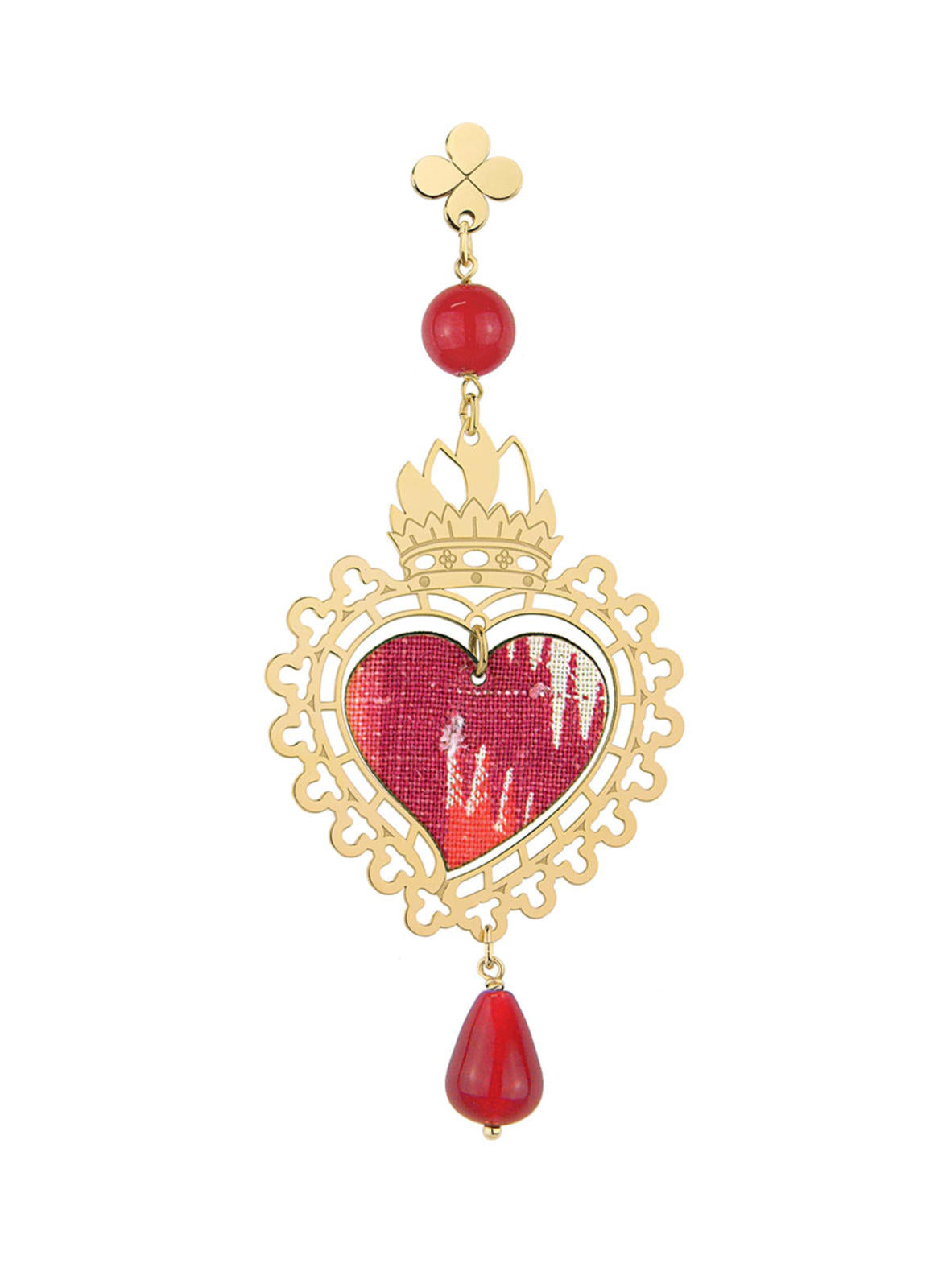 Lebole Orecchino Singolo cuore Seta Piccolo Rubino