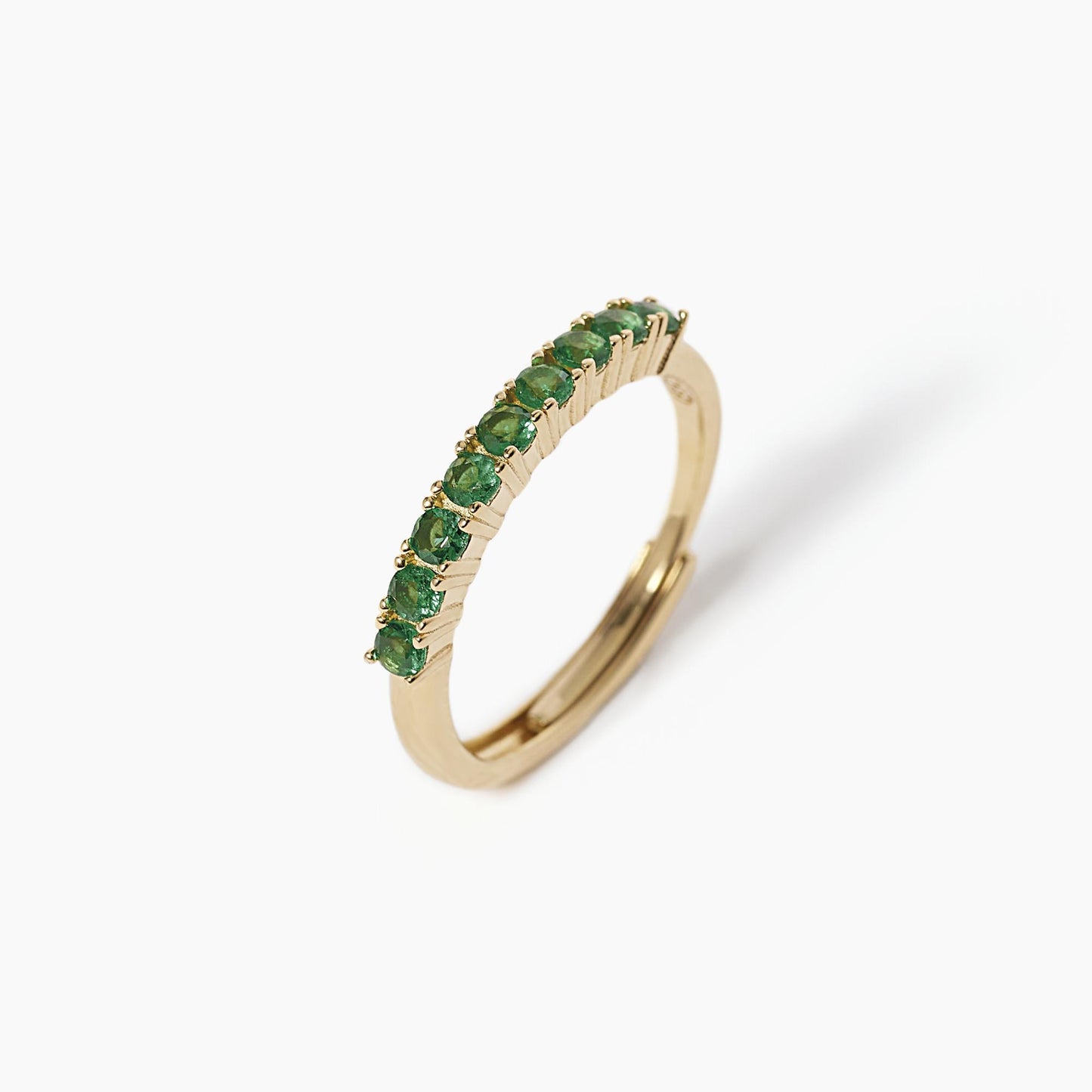 Anello riviera in argento con smeraldi sintetici.