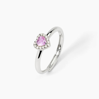 Anello da donna regolabile in argento rodiato con tormalina sintetica taglio cuore e zirconi bianchi.