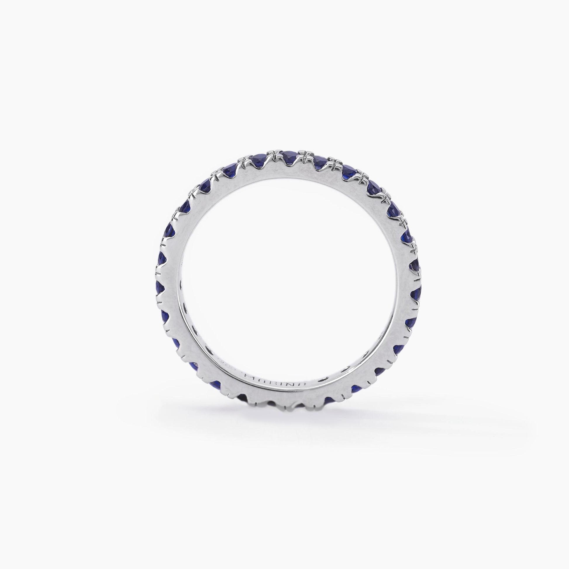 Anello veretta in argento con zaffiri sintetici.
