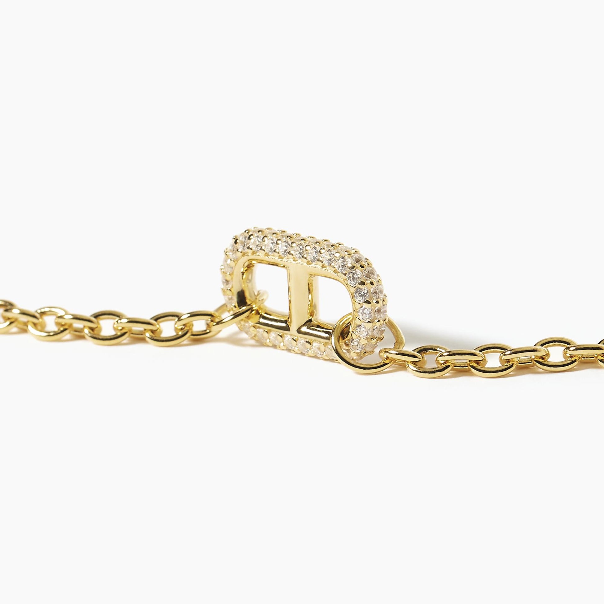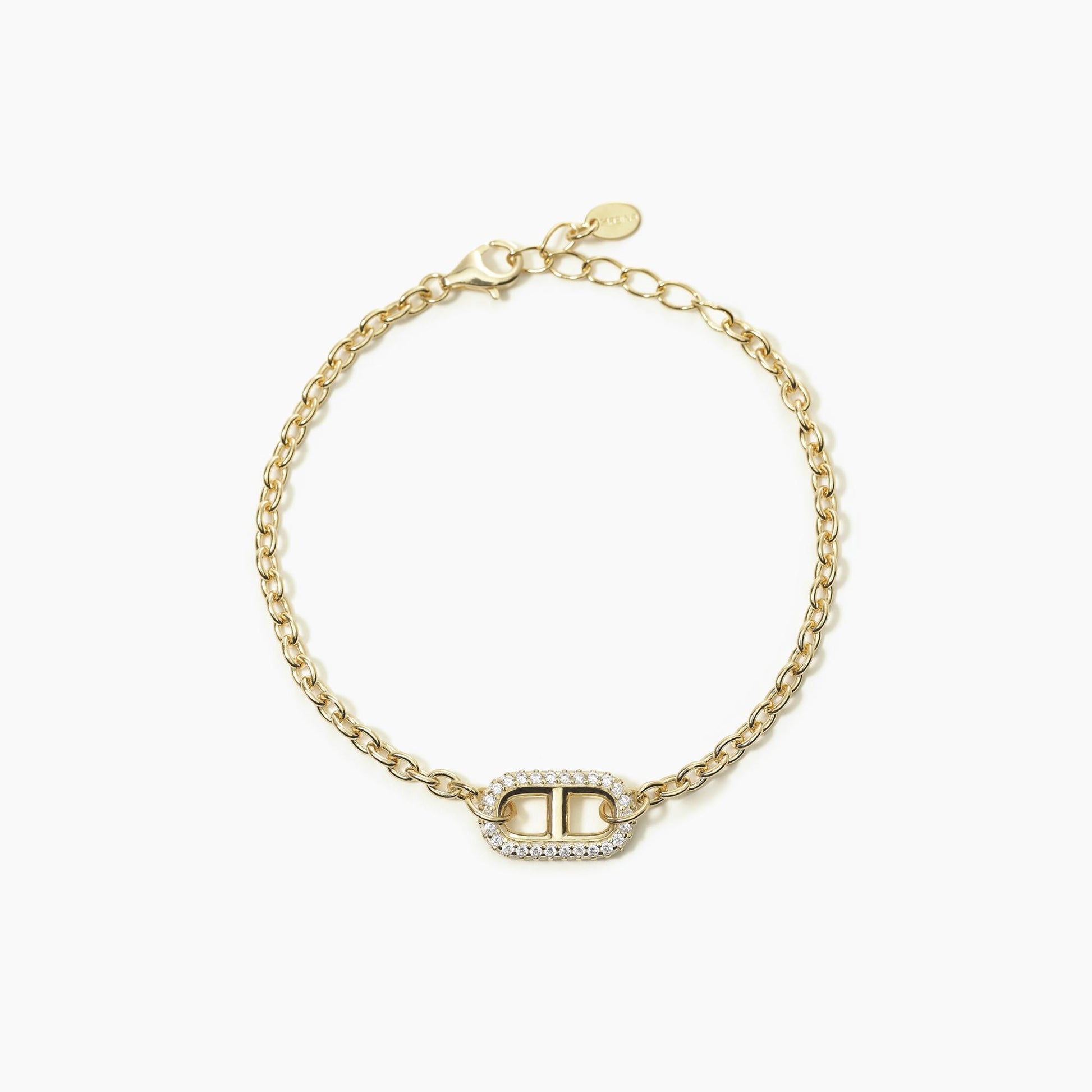 Bracciale rolò in argento dorato con maglia marina in pavé di zirconi.