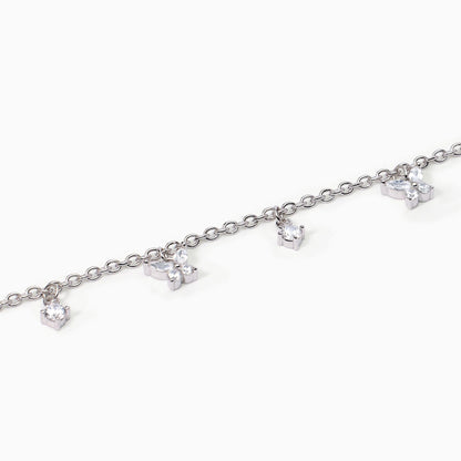 Bracciale da donna in argento rodiato con catena forzatina e zirconi bianchi pendenti taglio marquise.