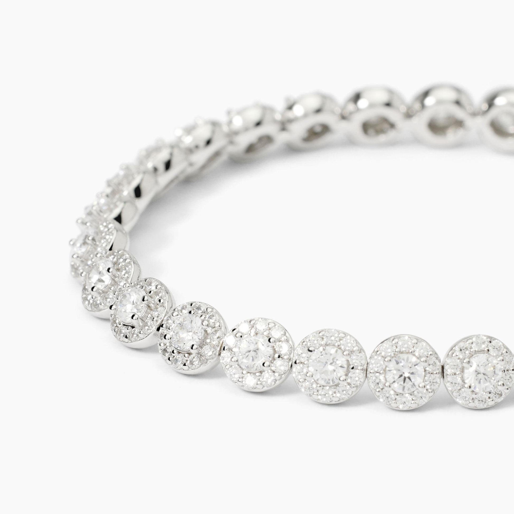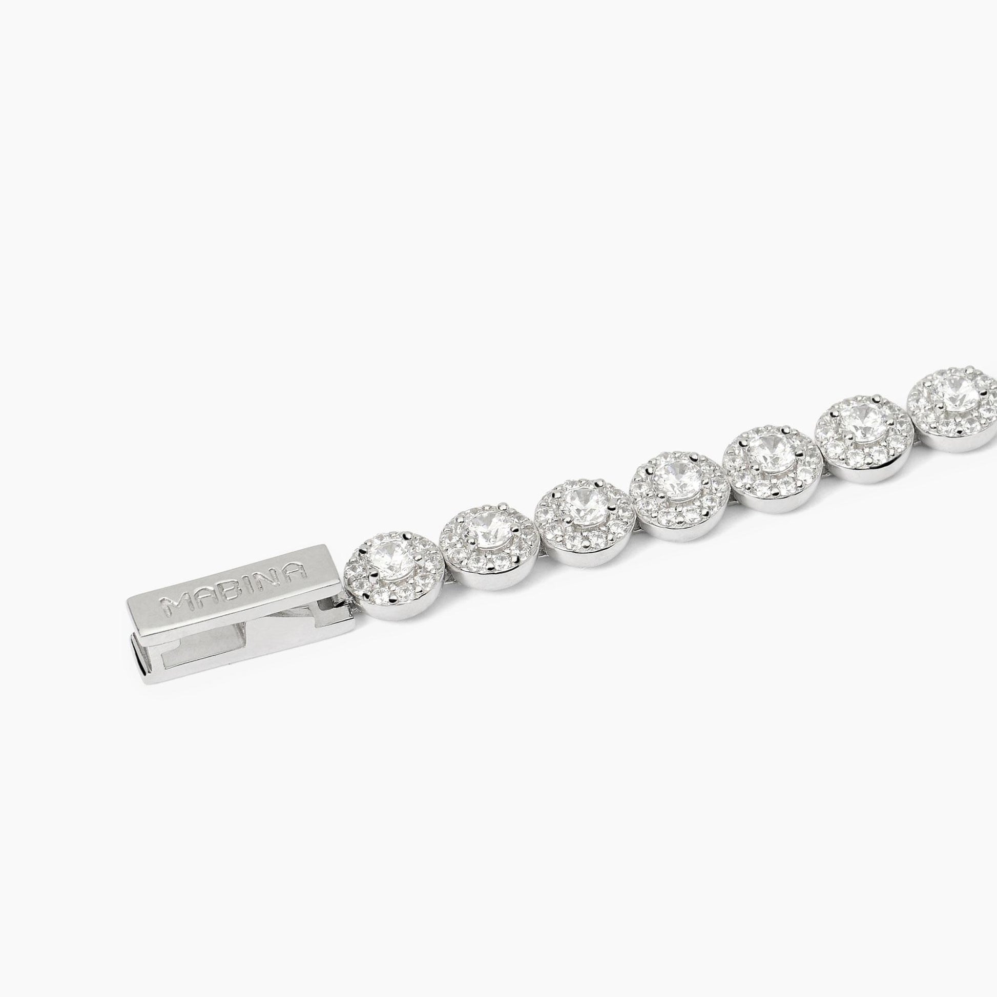 Bracciale tennis da donna in argento rodiato con zirconi bianchi.