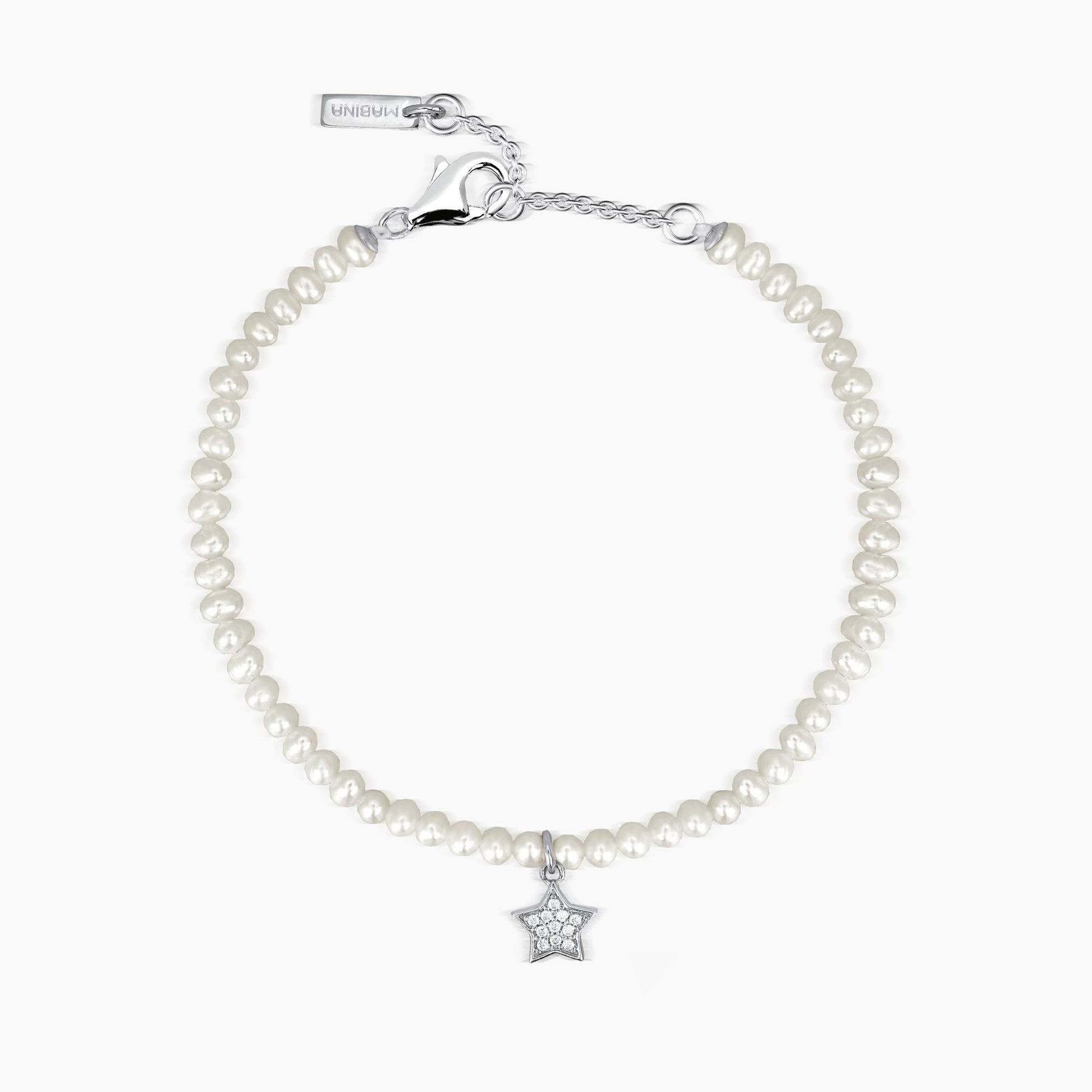 Bracciale perle coltivate in argento con ciondolo a stella in pavé di zirconi.