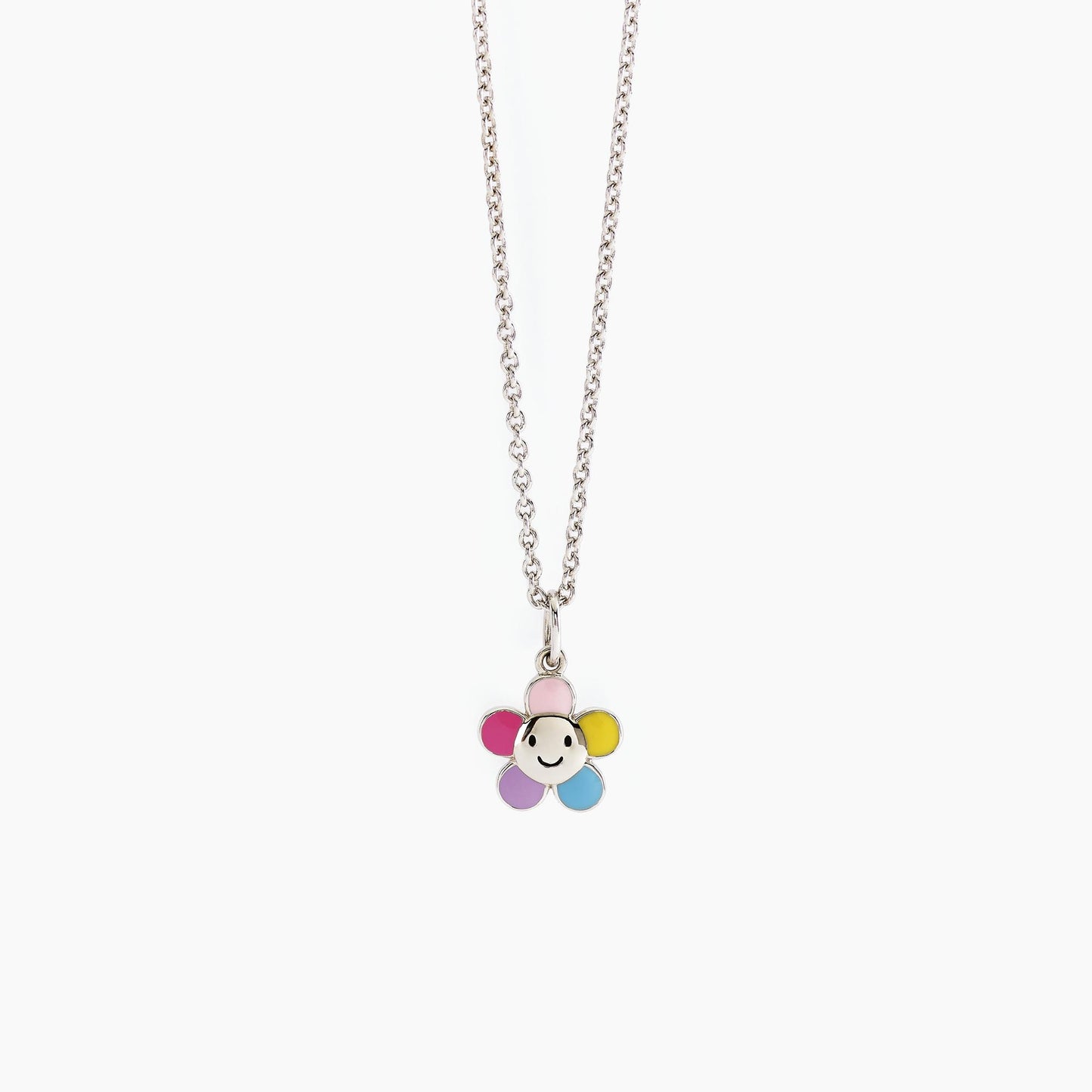 Girocollo rolò in argento con ciondolo a forma di fiore smaltato multicolor.