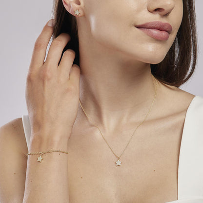 Orecchini a lobo in argento dorato a forma di stella in pavé di zirconi.