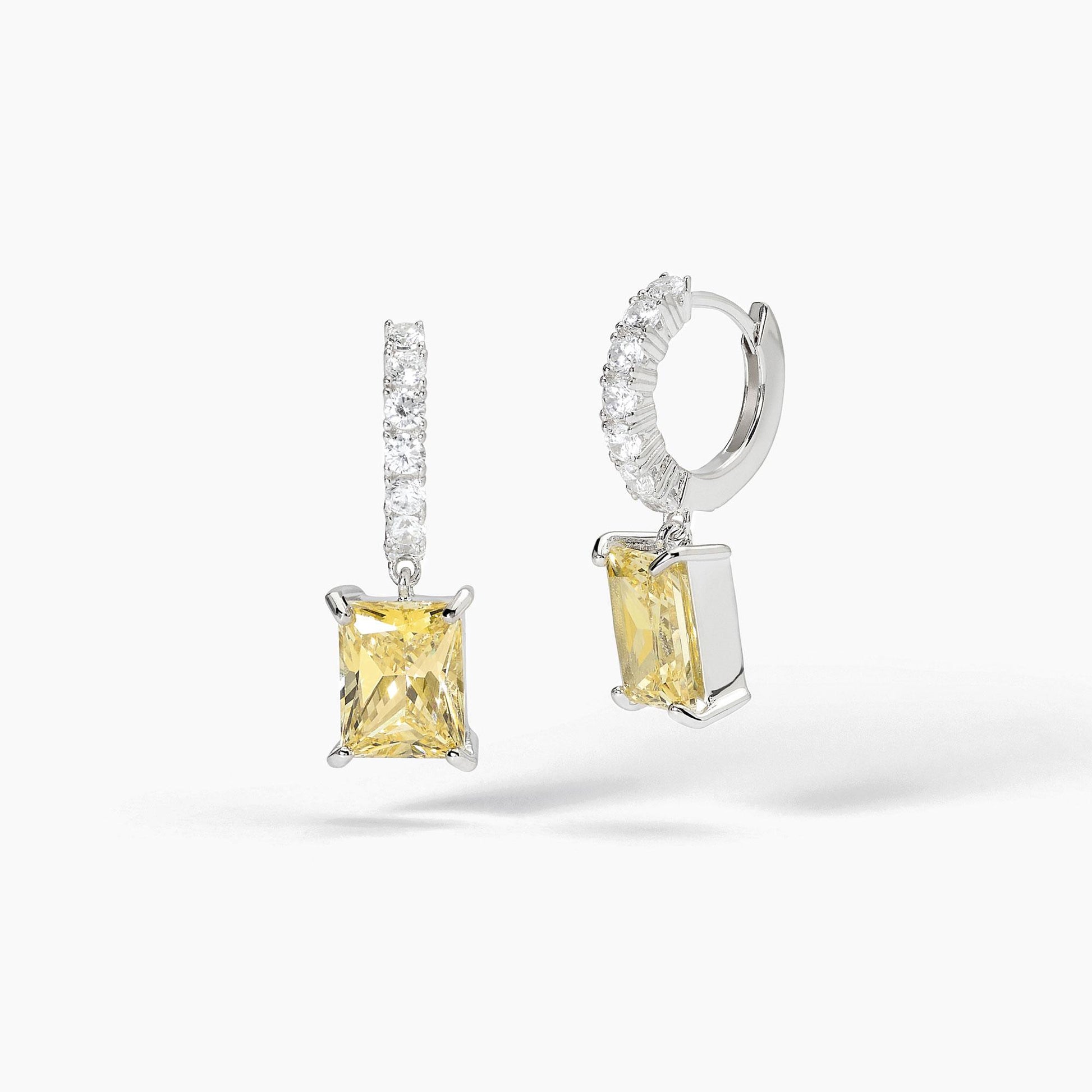 Orecchini da donna in argento rodiato con zircone Lemon taglio princess e zirconi bianchi.