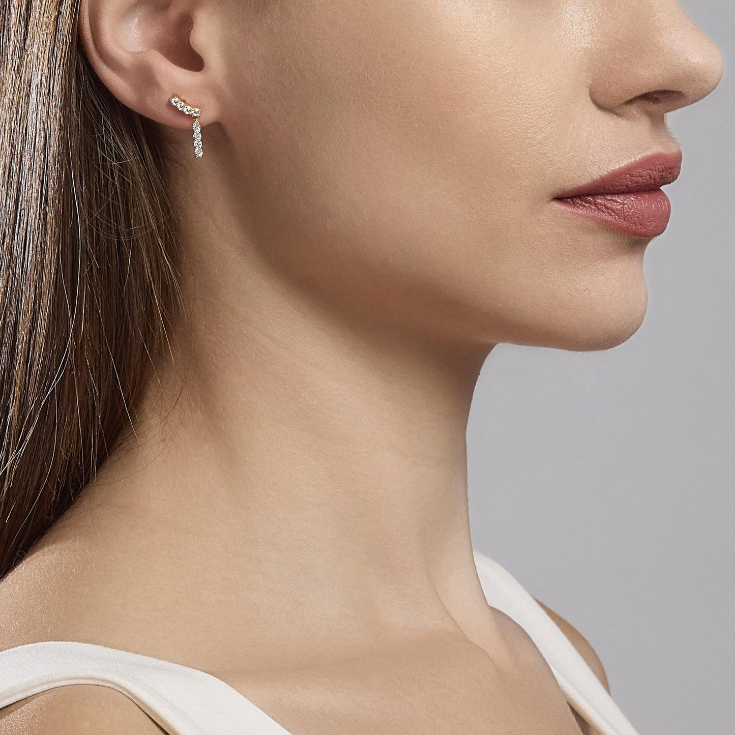 Orecchini pendenti in argento placcato oro 18k con zirconi bianchi.