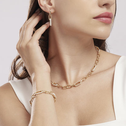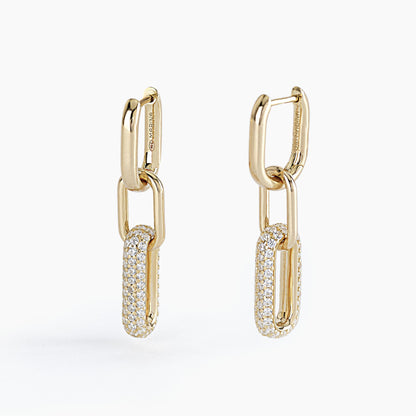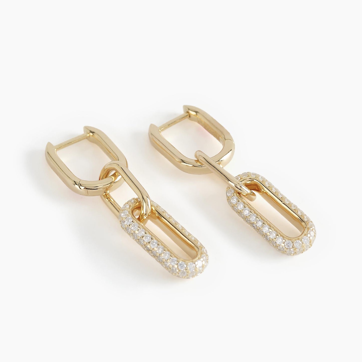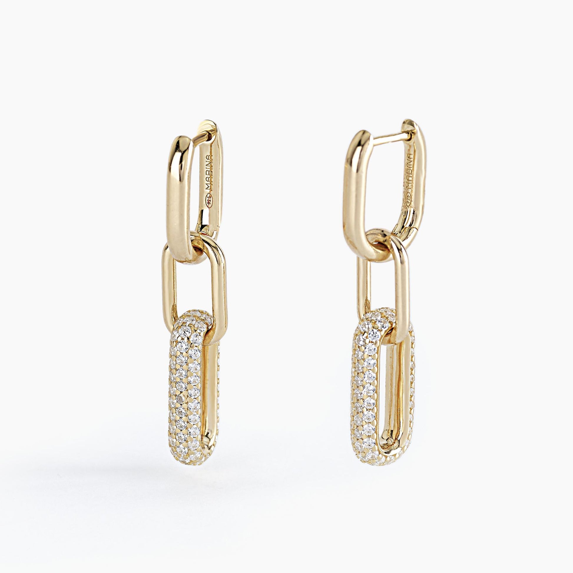 Orecchini a maglie ovali in argento dorato lisce e in pavé di zirconi.