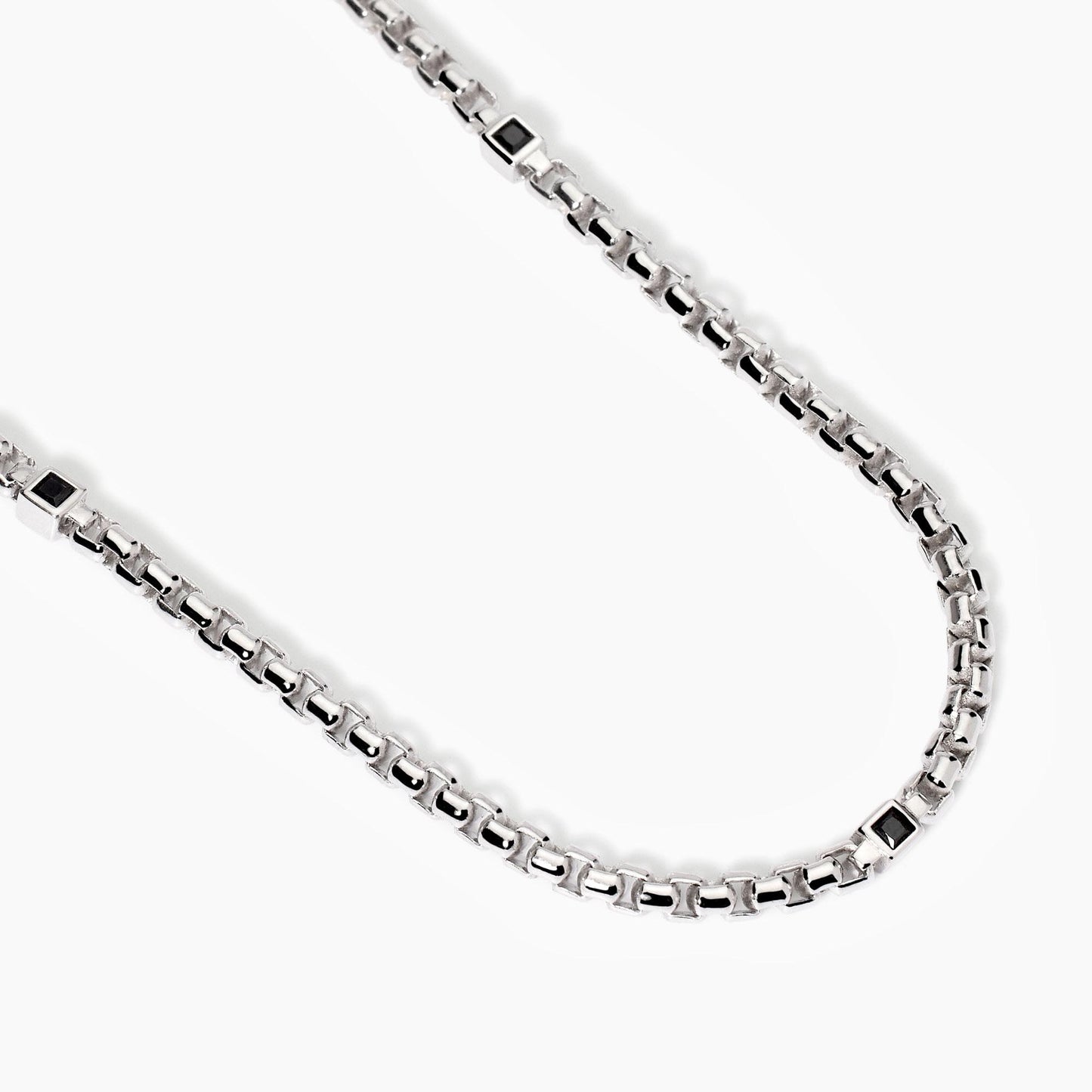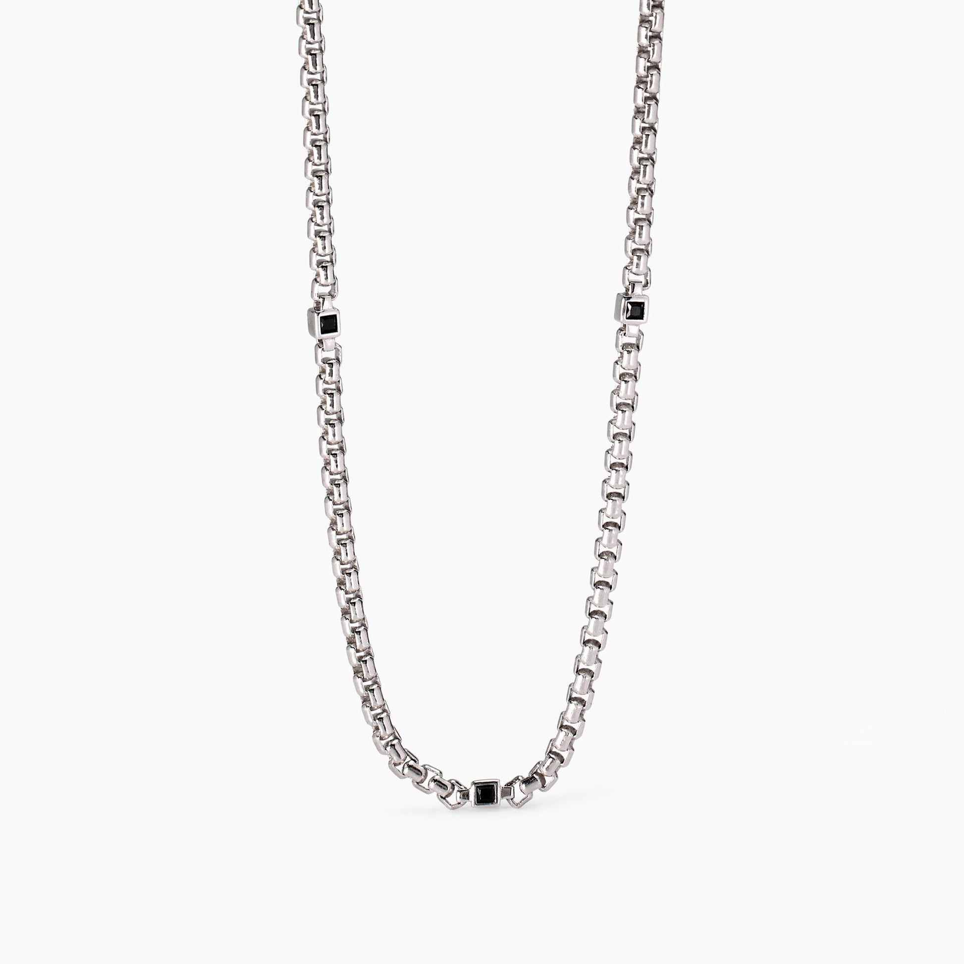 Collana da uomo in argento rodiato con catena veneta e zirconi neri carré.