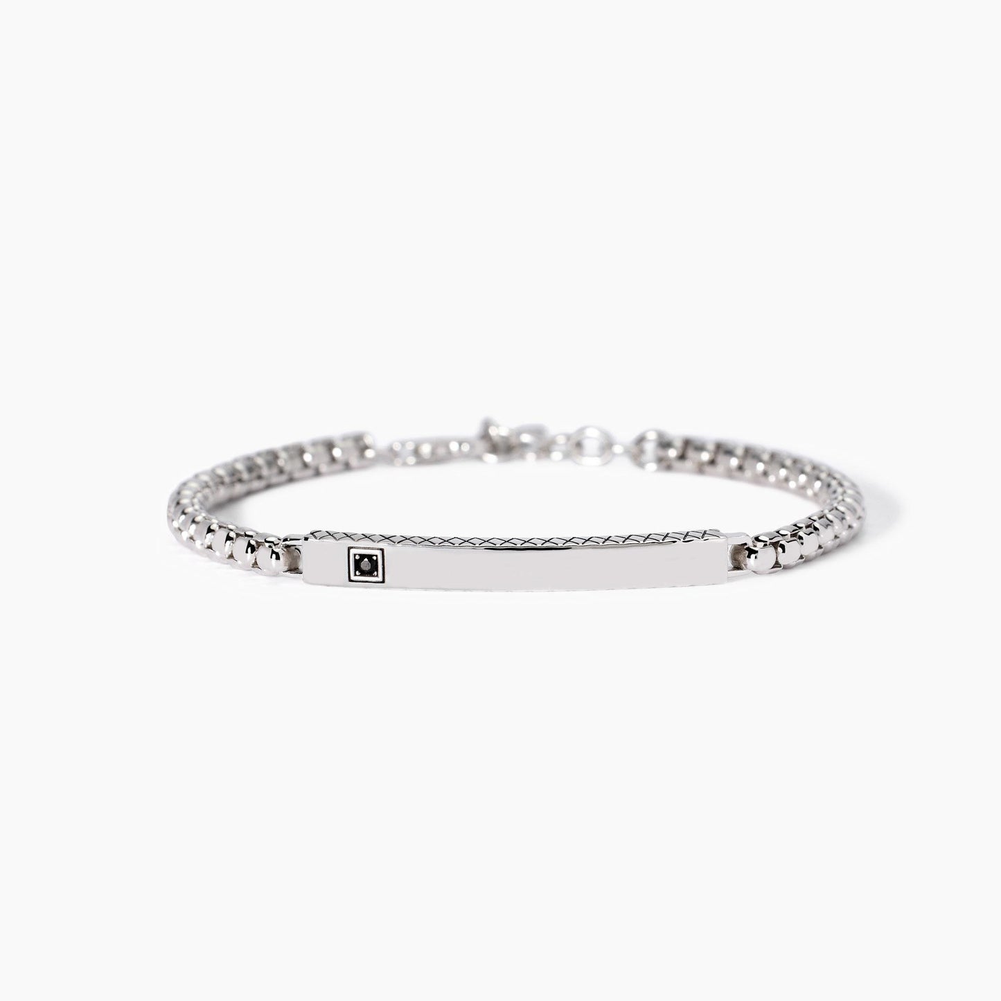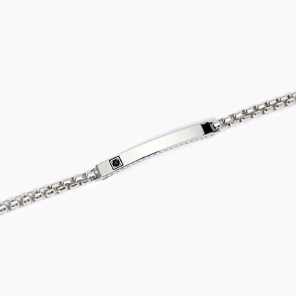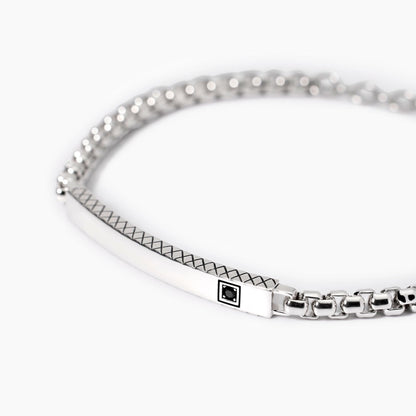 Bracciale regolabile da uomo in argento rodiato con catena veneta e piastra centrale con zircone nero.