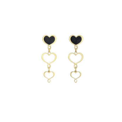 Orecchino a lobo singolo con cuore Maman con smalto nero e due cuori maman pendenti. Realizzato in argento 925 con galvanica oro giallo ad alto spessore e resistenza. Lunghezza totale 27 mm