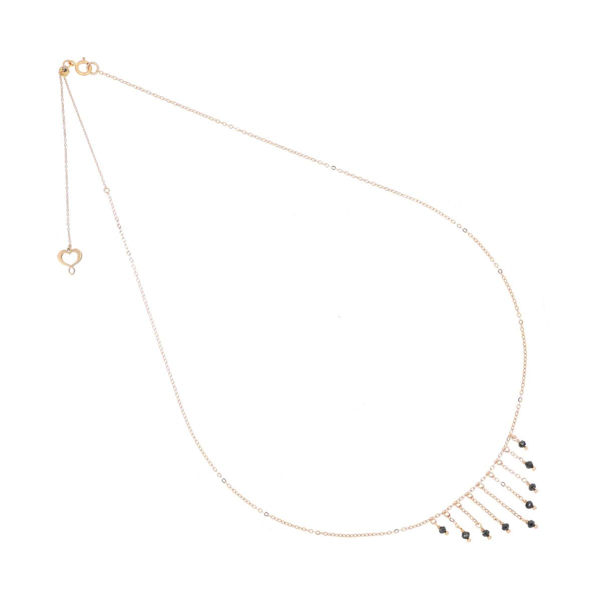 Girocollo realizzato in oro rosa 18 carati. Presenta una cascata di catene aventi alle estremità nove diamanti neri.