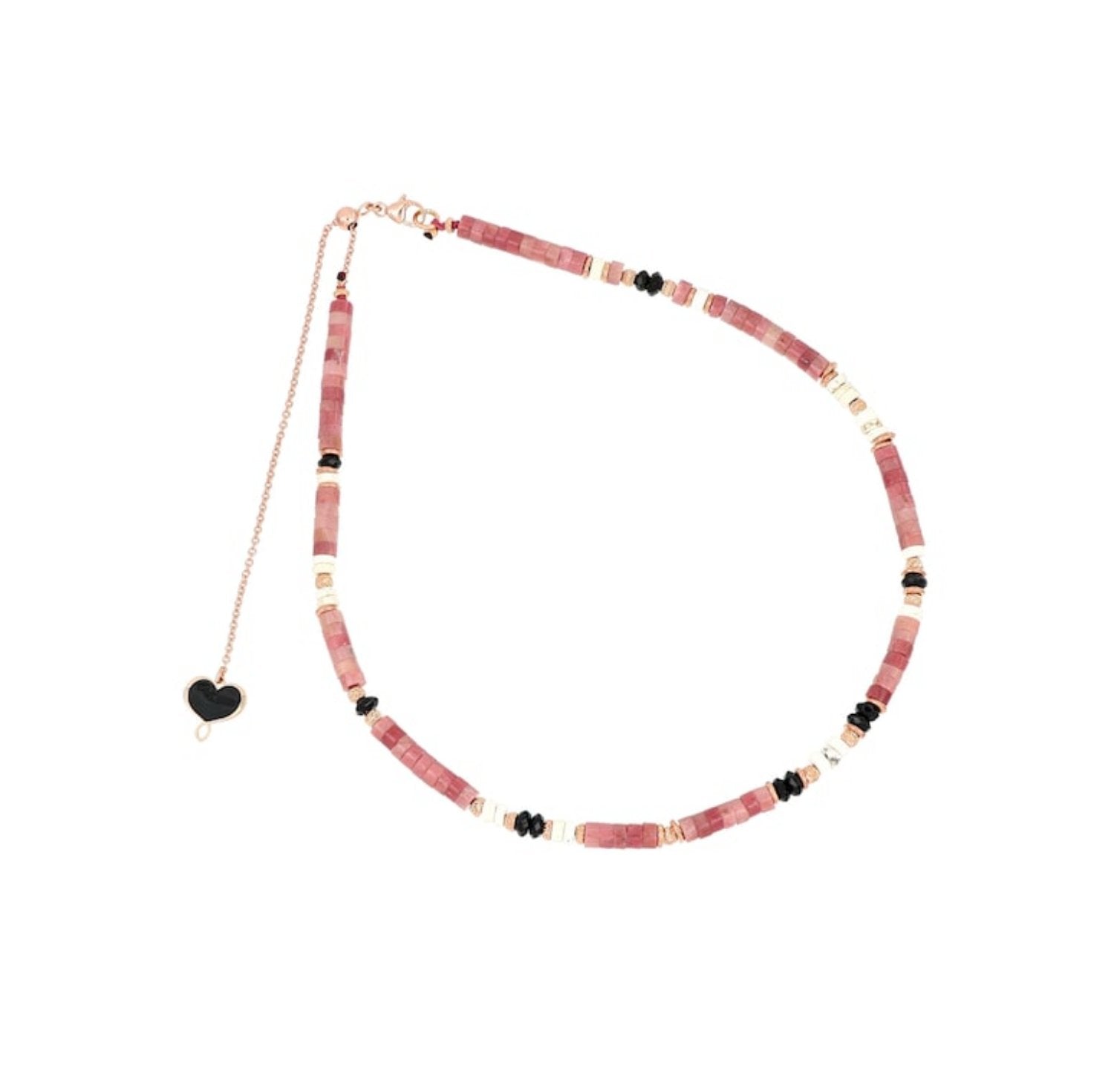 Le pietre impiegate sono Rodocrosite rosa, Aulite bianco, Agata nera.