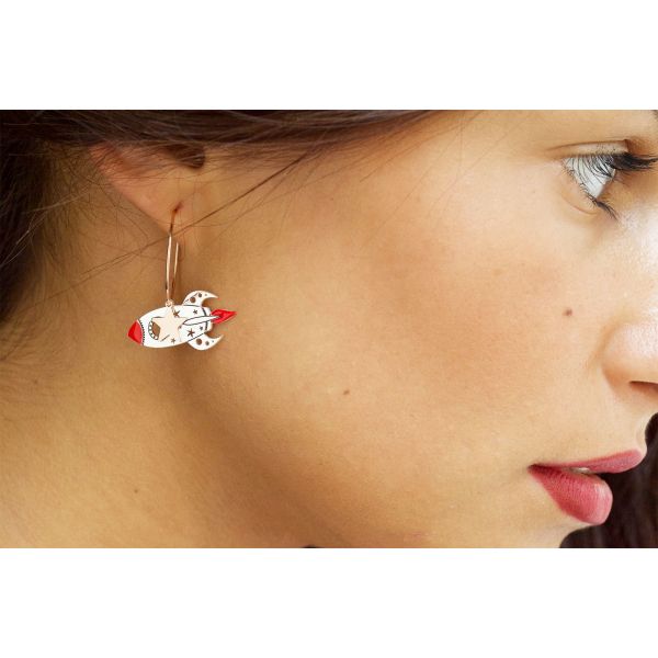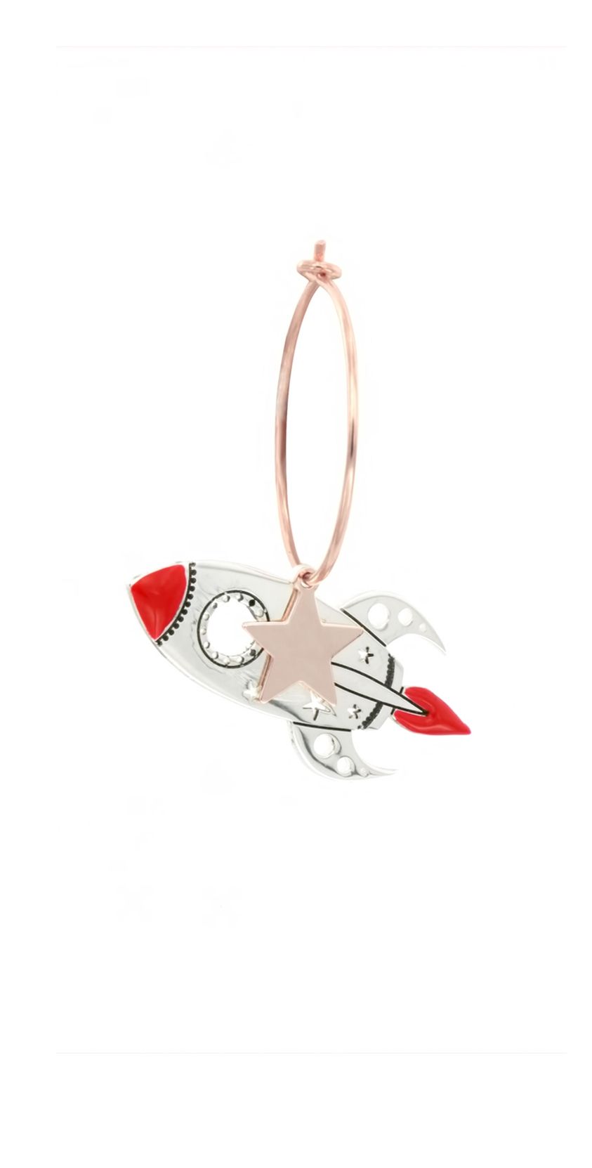 Orecchino singolo cerchio 19 mm con razzo e stella