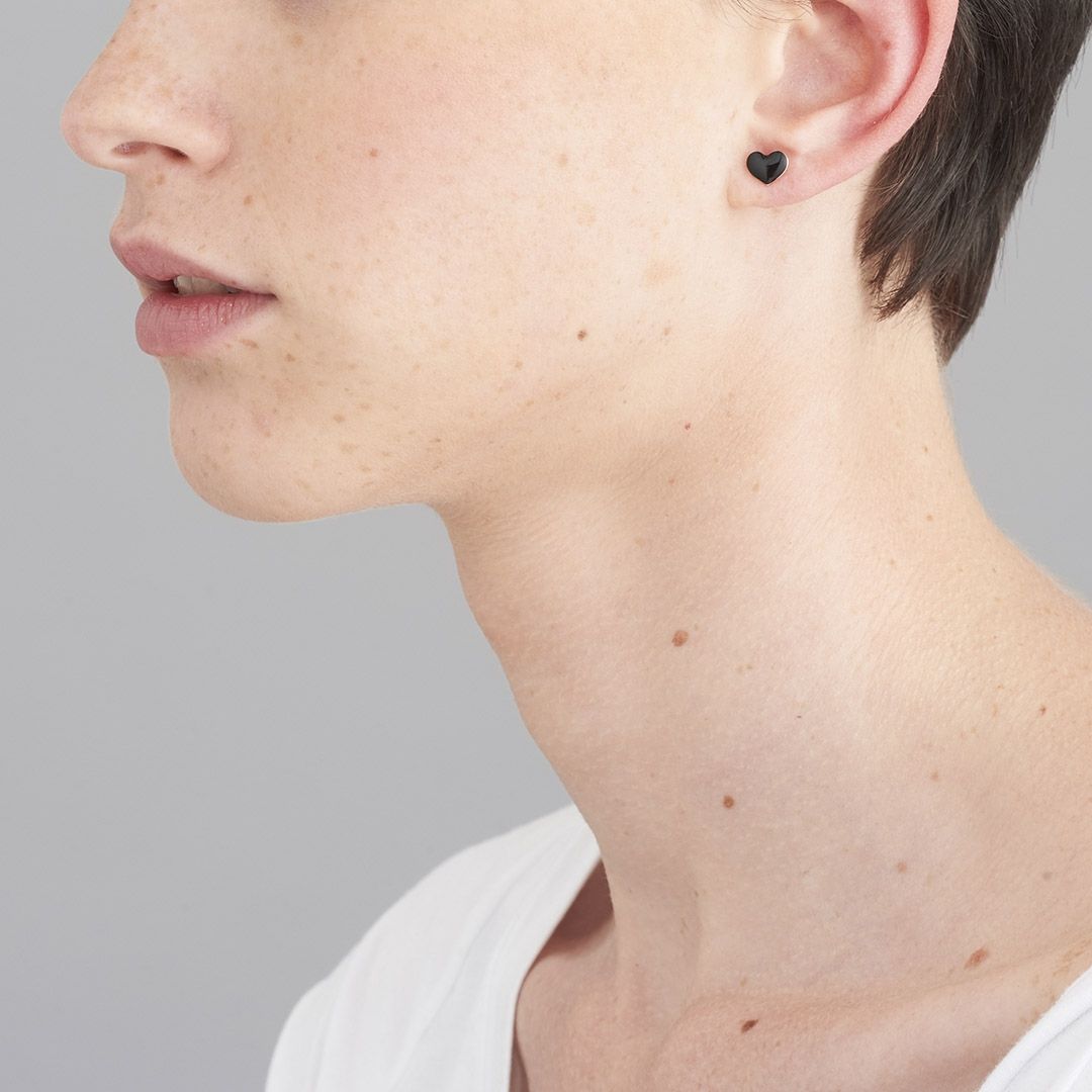 Orecchino singolo a lobo. Il cuore di 8 mm è realizzato in argento 925 e smaltato in nero.