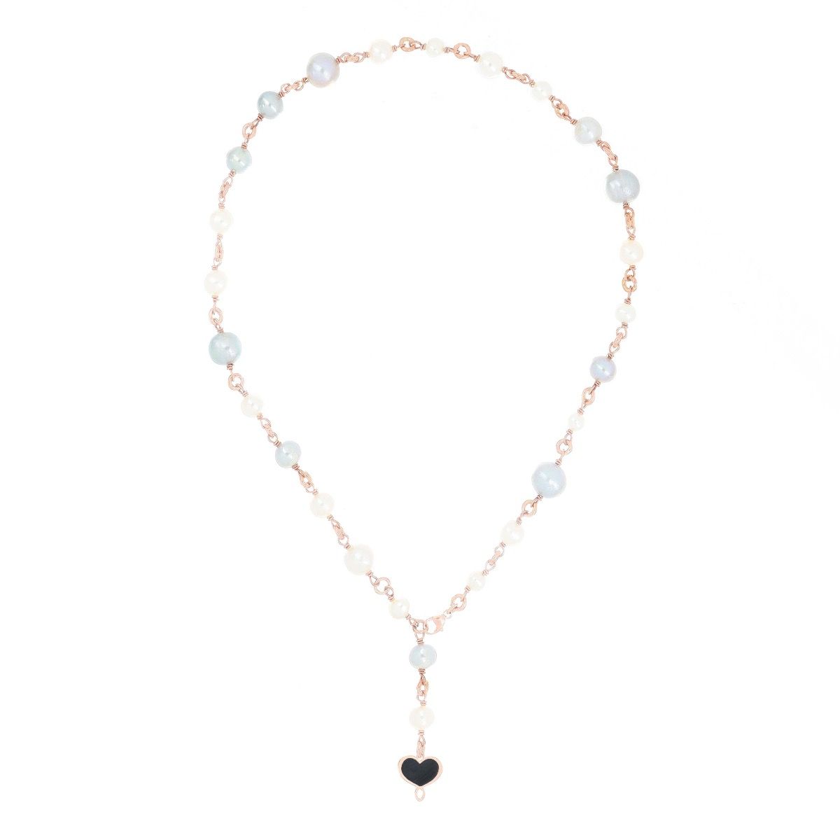 Rosario della Collezione Perla di Labuan realizzato in argento 925 con galvanica oro rosa ad alto spessore e resistenza.